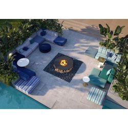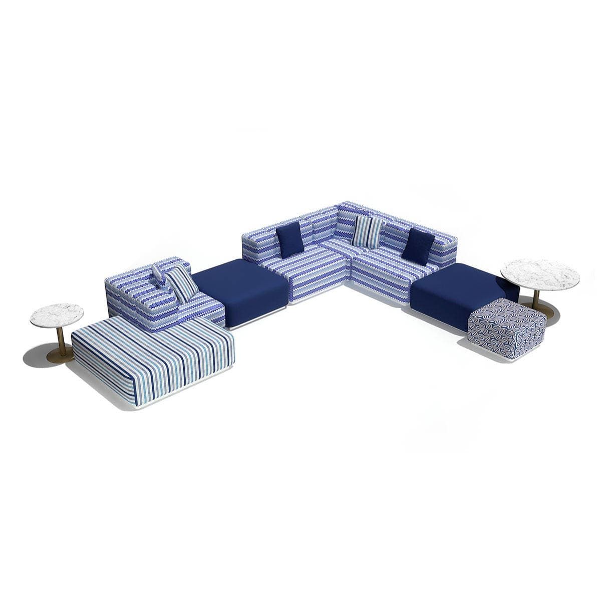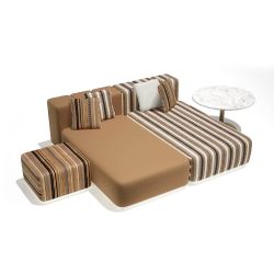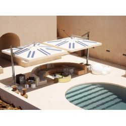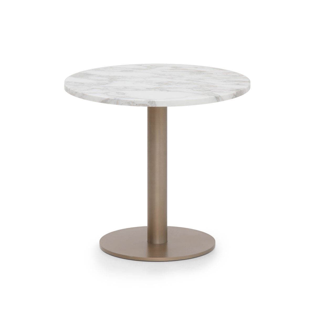 Top in marble Carrara, metal base in Light Gold satin finish.